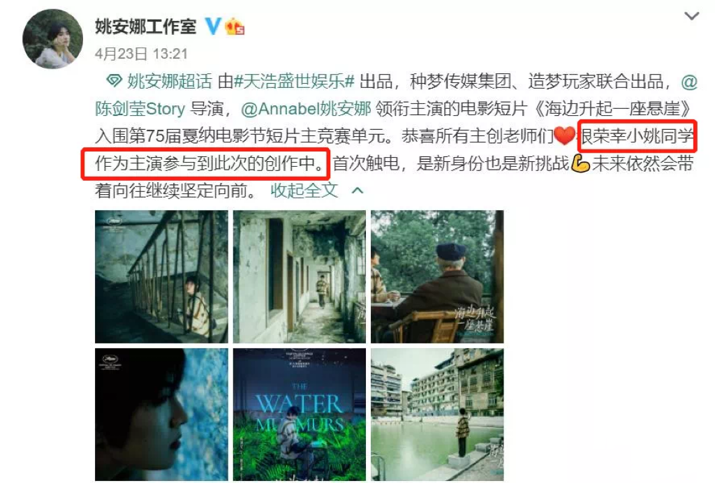 姚安娜主演的短片,居然入围了戛纳。