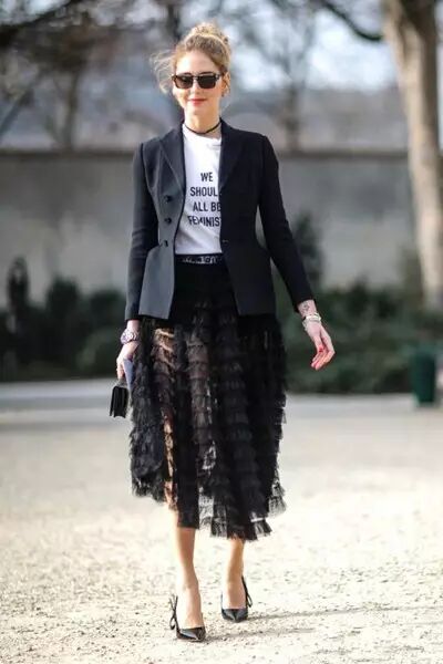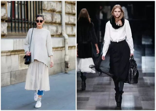 我们不疯魔不时尚的街拍达人开始把纱裙运用在Dress over Pant上,用丰富的层次感和略显中性的裤装去中和纱裙的小家子气,效果也是出奇好。