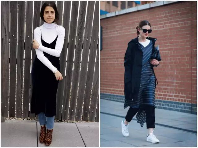 这里的裙子一般指的是衬衫裙、长裙、半身裙或者吊带裙。常见的牛仔裤、legging、阔腿裤or皮裤都可以做内搭。