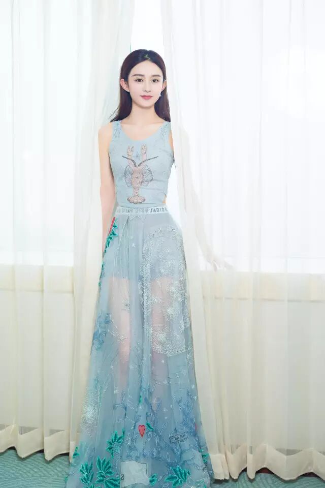 仙女选择Dior春夏系列的纱裙搭配牛仔裤,个性不失优雅。