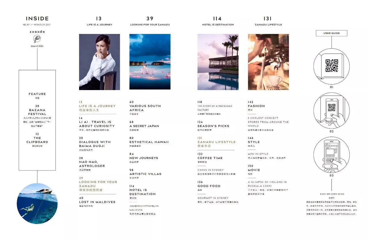《赞那度旅行人生》杂志由三个版块组成,分别为有故事的人生,寻找你的赞那度,以及赞享生活。