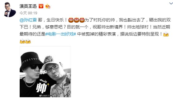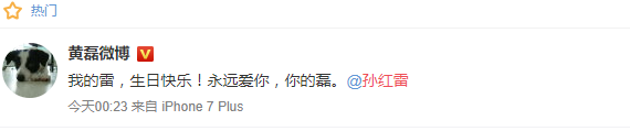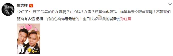 16日,正值孙红雷48岁生日,极限男人帮罗志祥、黄磊、王迅凌晨纷纷为好兄弟送上祝福。罗志祥发文称:“12点了,生日了,我爱的你在哪呢?在拍戏?在家?还是你也跟我ㄧ样望着天空想着我呢?不管我们距离有多远,记得~我的心离你是最近的!生日快乐我的爱雷。”