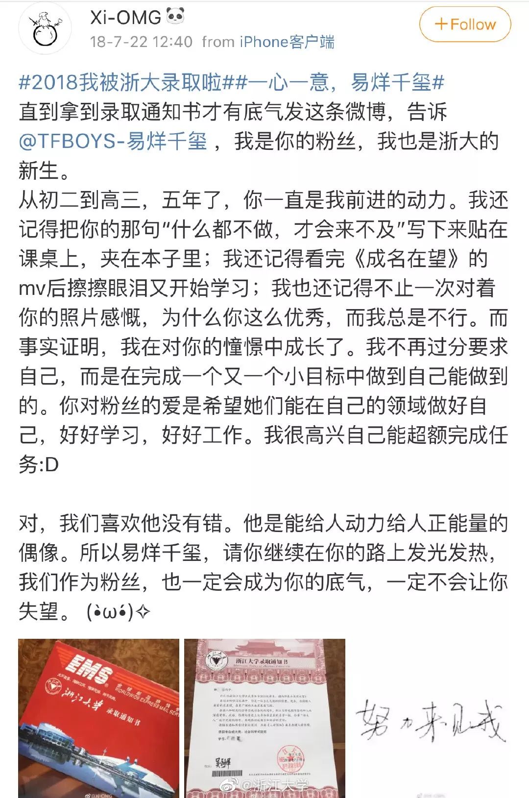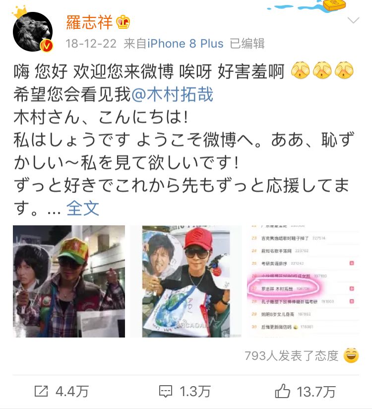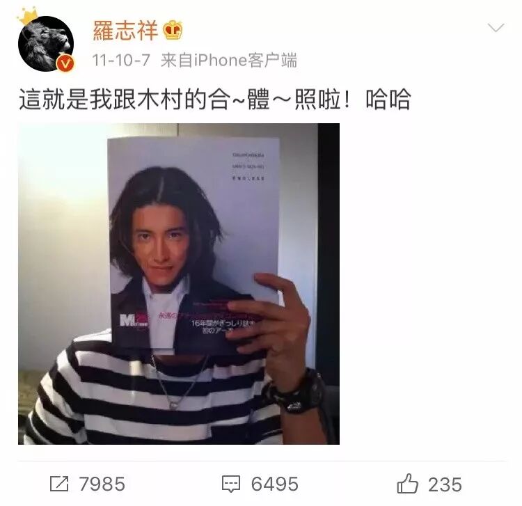 罗志祥追星直接喊「老公」,还说要嫁给他?网友:这也太会了! 冷笑话精选 港台男星 2019-08-24 21:29:53 776 创作不易,用心坚持,欢迎请BaGua喝几杯爱心咖啡!打赏并支持本文 打赏并删除本文 哈喽,狗子们晚上好 最近饭圈女孩又喜提热搜了说起来还挺正能量的王一博和肖战的粉丝「限时狂想」以爱豆粉丝的名义捐了一栋希望小学寓意为「博古通今,肖晓以礼」堪称是正能量追星典范这种应援方式冷哥要给 100 昏中国青少年发展基金会也转发了原微博表达了感谢网友纷纷在评论区感叹这才是追星应该有的亚子这也不是饭圈女孩第一次以正能量满满的方式闪亮登场了从夕阳红打榜团将周杰伦送上超话榜单第一到新闻联播 cue 饭圈女孩 C 位出道每一次冷哥都很想打 call现在有些人对「追星」这件事还停留在脑残的固有印象看追星党充满了忧虑的眼神:「脑子坏掉了」「有钱没处花」「年轻人的世界我不懂」「追星,正在毁掉一代人」对此,冷哥想说追星和追星真的不一样差别可能真的有这么大吧追车蹲酒店的私生行为粉圈都在抵制杨丽娟辍学追刘德华这种疯狂到丢弃真实生活的追星行为更是很久以前的极端案例了现在很多人追星是把偶像当做自己的精神力量激励自己变得更加优秀毕竟在娱乐圈好看的皮囊太多了支撑粉丝的更多是爱豆优秀的才华和闪闪发光的人格魅力接下来冷哥就带大家看看真 · 硬核粉丝究竟是一种怎样的存在闫子贝全国游泳冠军赛男子 50 米蛙泳决赛平全国纪录夺冠者有细心网友发现他赛前穿的竟然是华晨宇的应援服说起来闫子贝还真是华晨宇的铁杆粉丝接受采访时还不忘给偶像点赞把自己的战绩一部分归功于是偶像的力量追星追成「中国蛙王」接受采访时为偶像在线打 call以一己之力把偶像带上热搜华晨宇之后也说很为他骄傲真追星典范 · 硬核男粉啊!罗志祥小猪大概是娱乐圈最知名的追星人士了在偶像的名气面前自己的名气不值一提被记者问「如果自己的粉丝都去 follow 木村怎么办」罗志祥直接开启安利模式说自己的追星史可以写成一部偶像剧主持人:你怎么这么厉害?!刚出道时就喜欢木村拓哉除了沉迷颜值无法自拔之外还希望成为和偶像一样的「全能型」艺人结果真的活成了偶像的亚子!因为唱歌走红,还被称为「亚洲舞王」演戏也不在话下当年一部《转角遇到爱》红遍大江南北现在活成了一个被歌唱事业耽误的综艺咖而自己的追星史也是一步一个脚印走出来的为了能够和木村搭上线罗志祥学日语坚定了进军日本演艺圈的决心在日本综艺上模仿木村被主持人认出来激动到分不清东南西北日本发展由于一些原因被搁置真正的转机可能还是偶像开通微博拥有 6000 万粉丝的罗志祥第一时间发微博欢迎偶像第二天偶像发博各种撒泼打滚求网友送他上墙第三天还真被偶像翻牌了!接下来真的是一路逆袭11 年还只能和杂志合照19 年成功让偶像穿上了自己送的衣服和偶像代言同一款产品成功建立业务关系写成一部玛丽苏偶像剧都不为过毕竟这可是一个声称愿意嫁给木村的男人!直接称偶像为「老公」并且得到女友的大方支持这是什么神仙操作啊妥妥的「追星赢家罗志祥」希望追星的狗子们都能成为同款优秀的人然后追星成功毕竟要想让偶像看到你不是通过围追堵截,打骚扰电话你必须成为同样闪闪发光的存在马云体育圈、娱乐圈追星代表都有了咱们商界大佬追星也不是盖的作为金庸的头号粉丝马云创办阿里后所有的会议室都用武侠小说中的地名命名每个入职的员工都要给自己取一个武侠人名作为花名名字真的够用吗???当时的马云大概没意识到阿里日后的规模还把偶像请来看阿里成长史的相册商界大佬秒变小粉丝这难道不是标准的追星赢家式笑容吗?最后也发微博把自己创阿里的功绩很大一部分归功于偶像「若无先生,不知是否会有阿里」把偶像的武侠精神发扬光大直接实践出一家前无古人、后无来者的互联网商业巨头公司除了「牛」咱也不知道该说啥了除了以上各追星代表团派出的扛把子选手外很多优秀的人都有自己的偶像乔布斯从小喜欢歌手鲍勃·迪伦在苹果发布会上放迪伦的歌在苹果最著名的广告片《 Think different 》中直接将偶像与马丁·路德金、爱因斯坦等人齐名还追到了偶像的前女友这波操作也很硬核啊!章子怡喜欢张国荣在《演员的诞生》中拿到张国荣演过的剧本直接像小女生一样高呼「我的张国荣」几乎每年都会发微博悼念白宇追星成功黄渤王俊凯也是追星励志本人那么小说的话都能成功兑现小凯本人也是非常优秀的爱豆还有很多普普通通的素人因为会发光的偶像变成了更好的自己浙大医学生胡江华SCI 论文致谢JJ林俊杰把冷哥看哭了!真的很感人但是这并不是个例不是只有 J 迷一家粉丝这么励志一边给偶像打call 一边把偶像当做前进的动力默默努力成为更加优秀的人去见你这才是追星的正确打开方式吧何老师的一番话给真 · 追星党做了最好的注解始于颜值,陷于才华,忠于人品希望所有狗子都能因为偶像变成更加闪耀的自己最有意义的应援是让偶像知道粉丝是一群和自己一样努力,一样优秀的人↙↙↙更多精彩点击【阅读原文】 创作不易,用心坚持,欢迎请BaGua喝几杯爱心咖啡!打赏并支持本文 打赏并删除本文 感谢您的支持鼓励,我会继续努力的!文章地址:用户邮箱:打赏金额:USDT 请