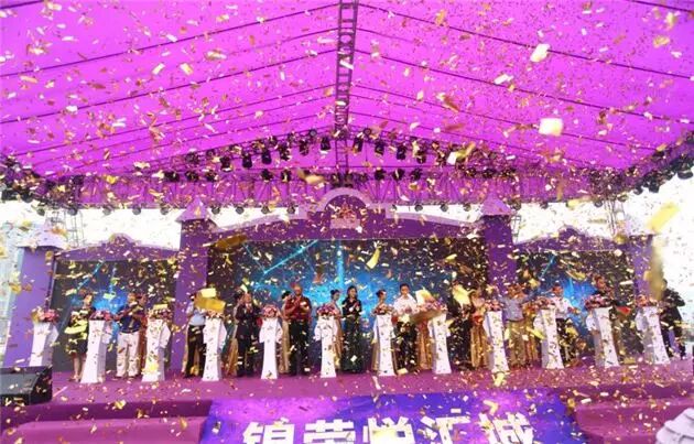 随后,与会领导与嘉宾一同上台,共同为锦荣悦汇城开业剪彩。