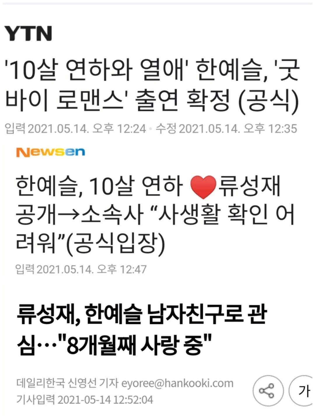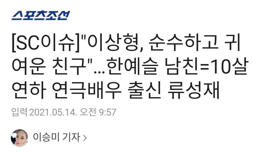 14日上午,韩国体育朝鲜新闻社发布新闻热点称,“理想型,又纯真又可爱的朋友”…韩艺瑟男友=10岁年下男、戏剧演员出身的柳成宰(音译)。