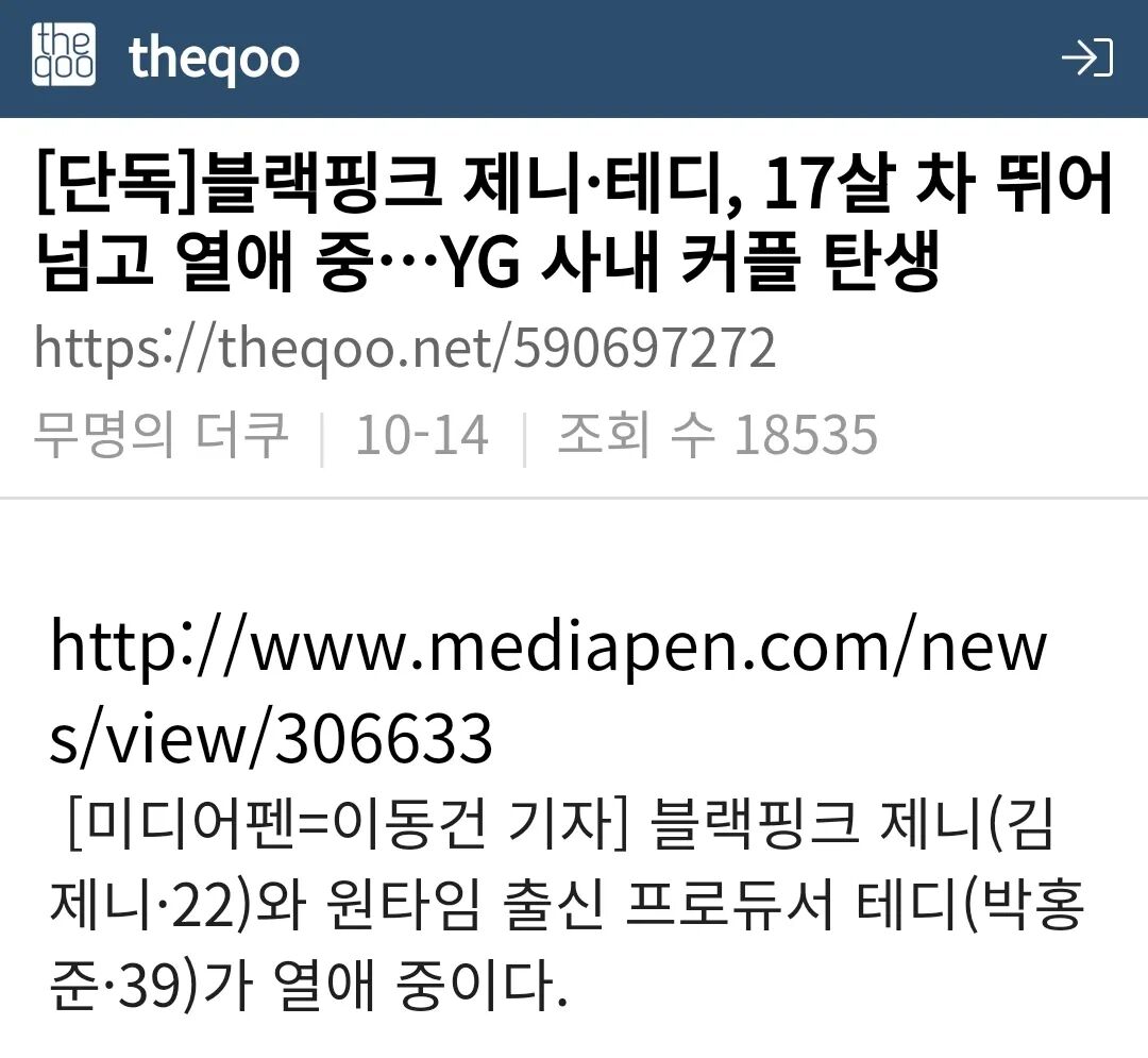 2017年10月14日,韩国娱乐圈相关人士爆料,Teddy和小自己17岁的Jennie交往。(按照年龄差,Teddy略胜一筹,可是韩艺瑟这次是公开恋情,赢在勇敢)