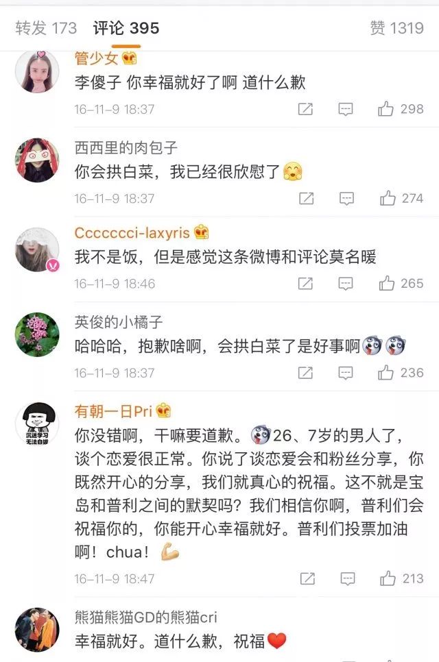 结果这一道歉,引来了大批粉丝的祝福,觉得欧巴幸福就好,不用道歉。