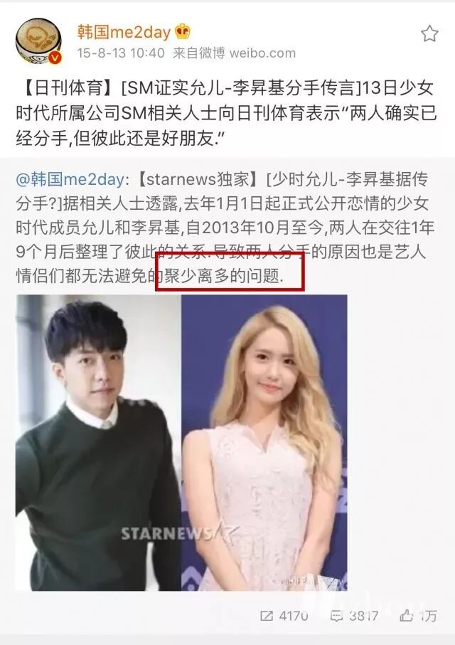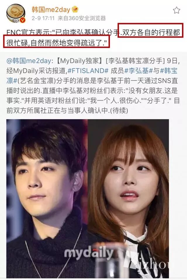 在韩国类似这种理由分手的明星CP简直一抓一大把,大概也是因为行程太忙,没有时间好好描述分手理由吧。不过分手理由这种事儿本来就没有必要对外交代啊,你觉得呢?