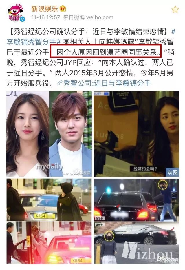 不过这次李敏镐和秀智的分手并没说明原因,只是说私人问题。