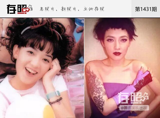 ▲图左为范晓萱可爱旧照,图右为范晓萱刺青照