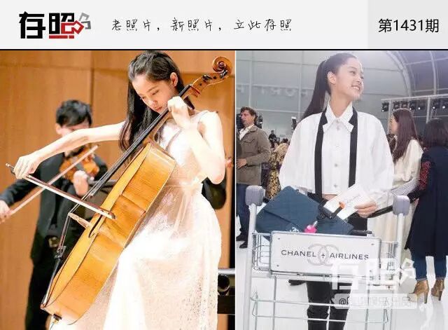 ▲图左为欧阳娜娜拉大提琴,图右为欧阳娜娜身穿名牌