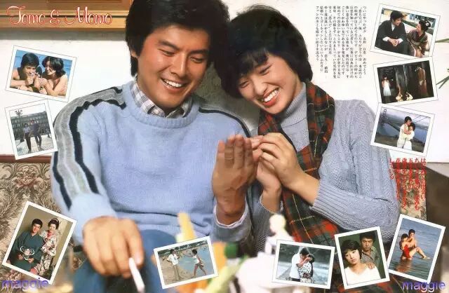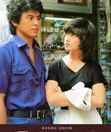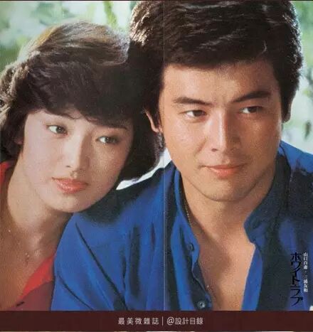 在电影里,她扮演的舞女与男主人公有一段宿命的相遇,最后却又怅然地挥手自兹去。这是她与三浦友和的第一次银幕合作,这次合作也仿佛是一场宿命,让终日朝夕相处,彼此关照的他们互生情愫。在这之前,他们曾共同拍过广告,当三浦友和第一次出现在山口百惠的面前时,让情窦初开的她顿觉清风拂面般的美好,“我在他身上感受到了一个迄今为止绝对没有遇到过的世界。他从不发出轻浮的笑声,以一种稳重的语调跟人说话,那种讷讷不出,让人感到新鲜。”芳心暗许也就是这个时刻发生的吧,从此她曾经一片荒芜的感情世界,多了那个惊鸿照影来的翩翩美少年。