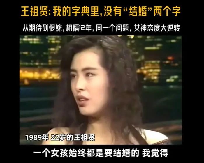 很多人唏嘘的,年轻时她对婚姻充满期待和憧憬,到12年后,对同一个问题,王祖贤的态度大逆转,斩钉截铁说:”我的字典里,没有‘结婚’两个字。”