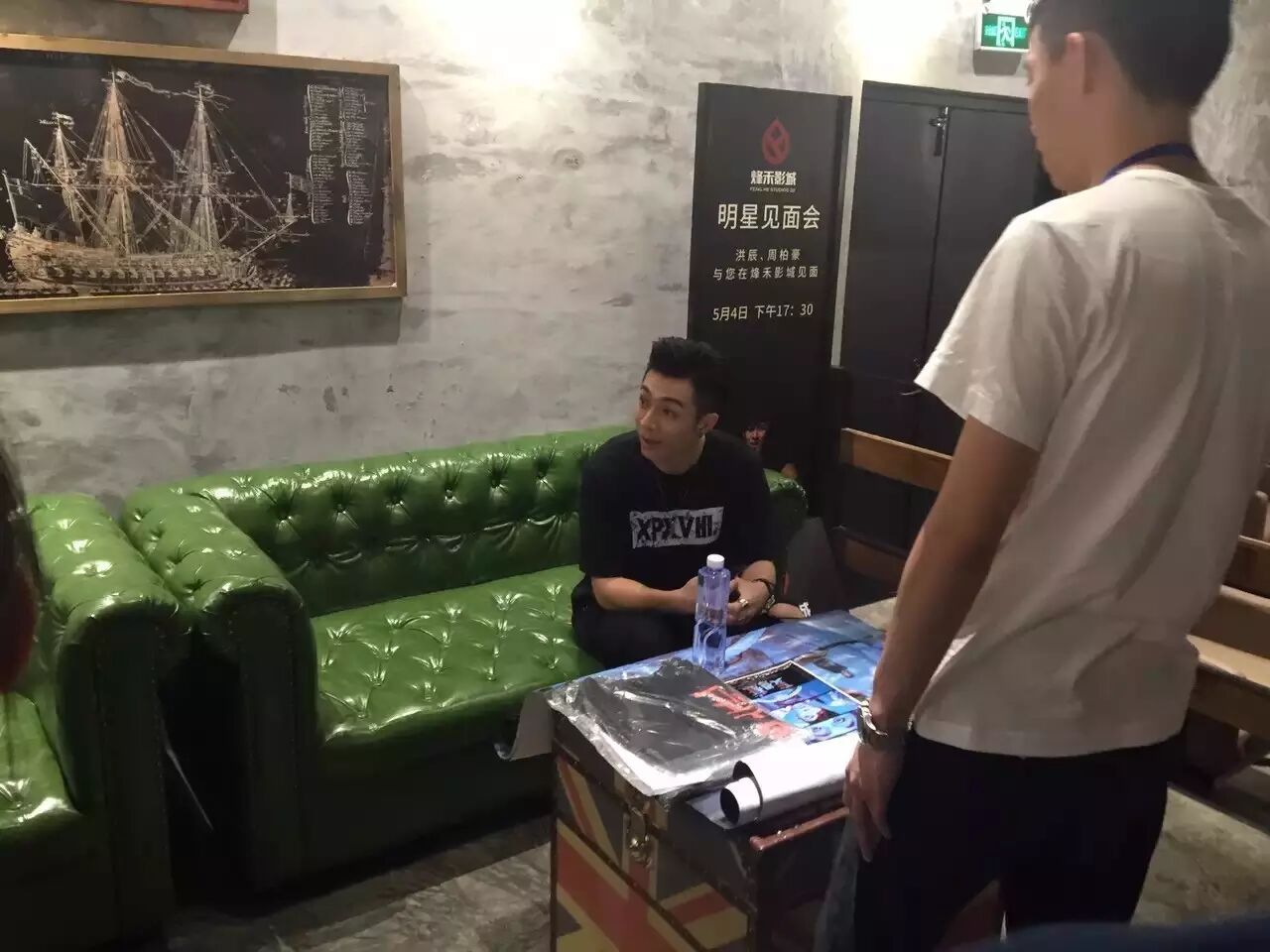 【在进入影厅之前周柏豪与洪辰在烽禾影城的VIP休息区稍作休息,并友好的与我们烽禾影城的工作人员合影&签名】