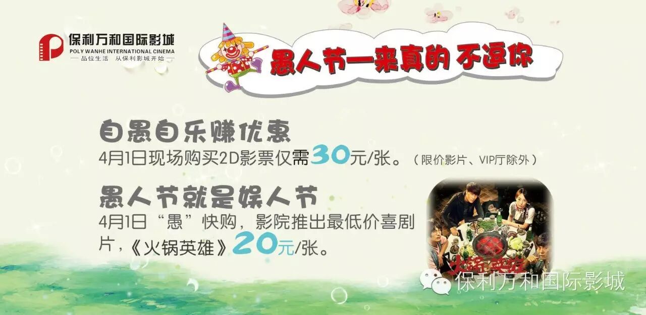 4月1日“愚”快购,影院推出最低价喜剧片,《火锅英雄》20元/张。