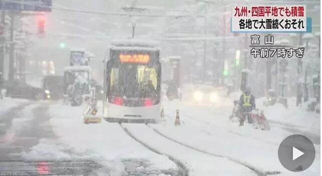 西日本至北日本的日本海沿岸一带迎来大规模降雪,九州及四国的部分平原地区出现积雪。各地大雪预计将持续至后天(13号)。据气象局消息,由于受到日本上空强冷空气以及冬季较强气压分布的影响,西日本至北日本的日本海沿岸一带,将出现大规模间断性降雪。