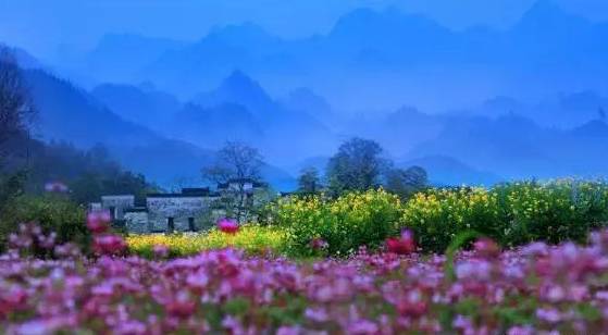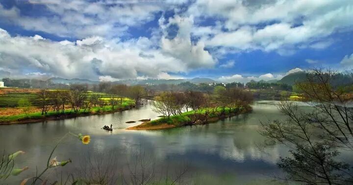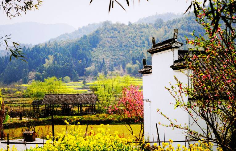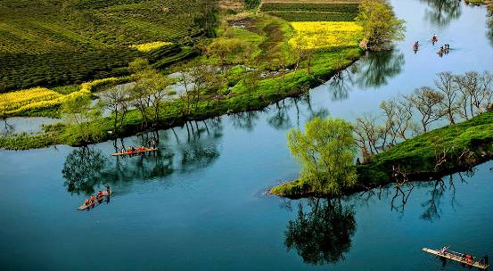 想象一下,一条条碧玉般的小河,自深黛色的崇山峻岭中奔腾而出,静静地流淌在绿色的旷野间、村落间。棵棵粉红的桃花、洁白的梨花点缀在漫山遍野金黄色的油菜花中,掩映着白墙灰瓦的徽派民居