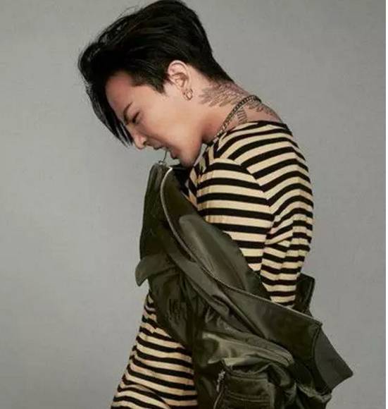 GD权志龙的短发,侧面看可以看见很明显的长刘海痕迹,下面是摇滚范儿十足的铲青头,刘海垂下来凸显个性帅气。