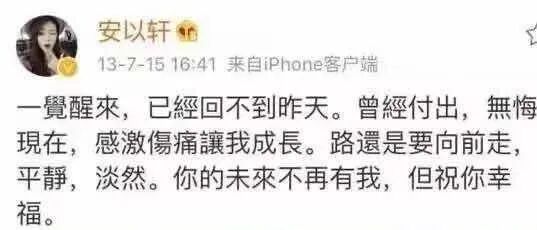 之后关于她的讨论,有人唱衰,有人叫好,有人觉得安以轩可惜,对此,安以轩并未做出任何回应,而她的微博也因为“半年可见”的设置,早已不再显示任何内容。