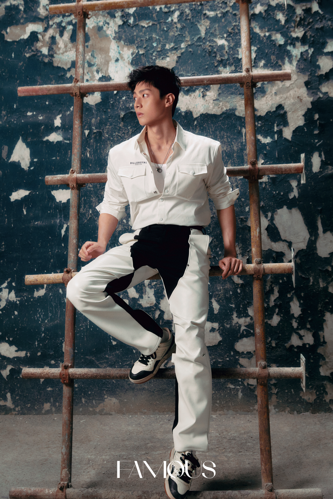 白色衬衣 DILLO|裤子 CEEC.LA|配饰 ZEGL|鞋子 KSWISS