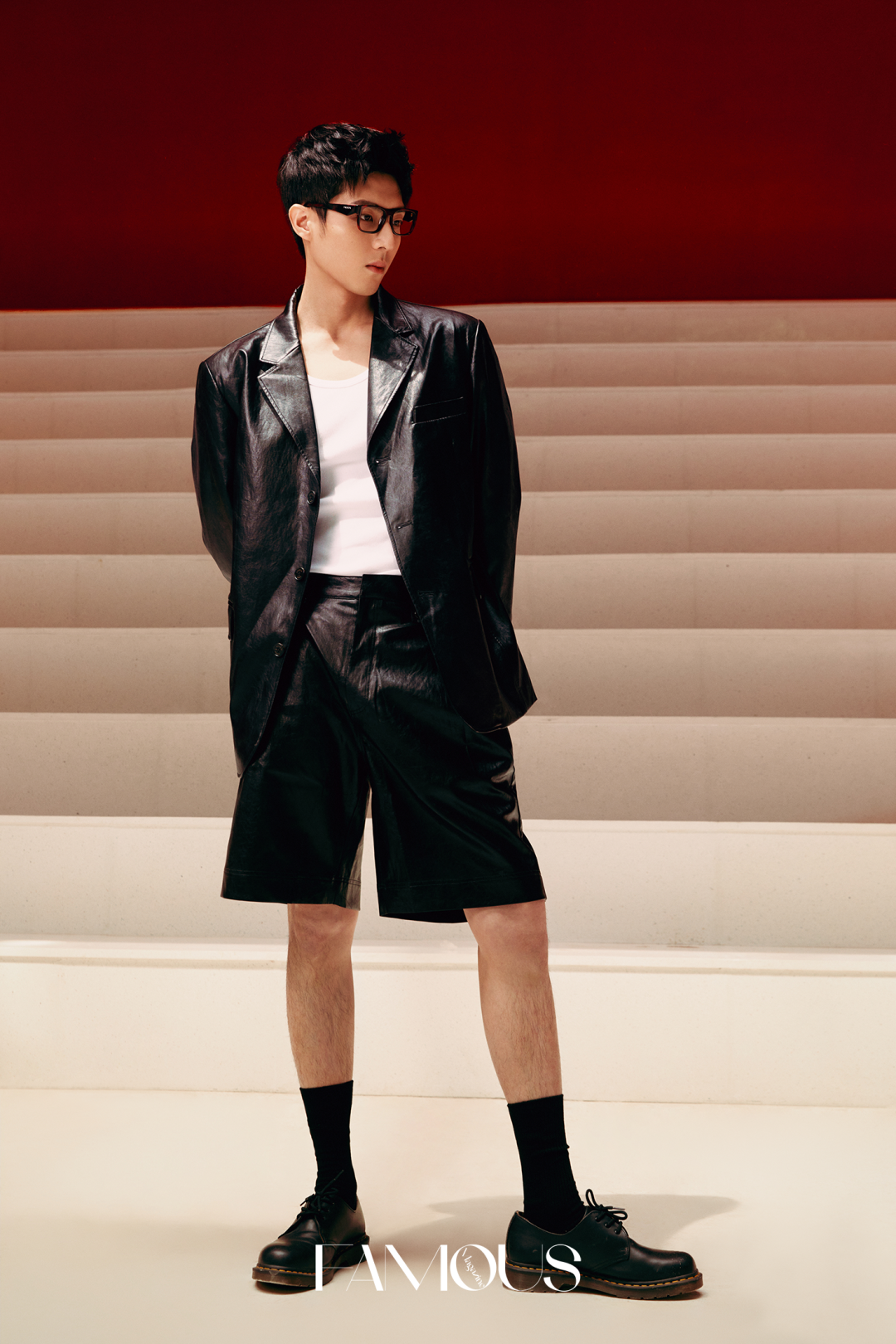 皮衣套装 nans|鞋子 DR. MARTENS|袜子 优衣库|眼镜 PRADA