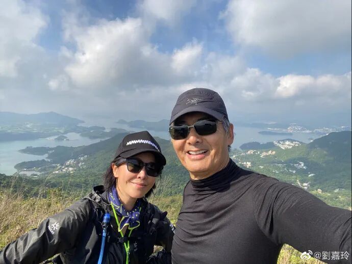 前段时间,刘嘉玲在网上晒出了与周润发一起爬山的照片。