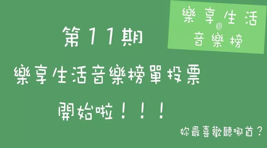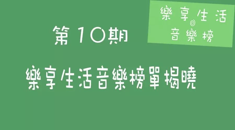 乐享生活音乐榜[第十期]榜单揭晓 张欣奕《在,不在》 专辑《全欣全奕》 尚雯婕《侠客行》 电视剧《侠客行》主题曲 陈小春《主题曲》 单曲《主题曲》 满江《归来》 《中国好歌曲live》 麦浚龙《刽子手最后一夜》 EP专辑《Evil is a point of view》 丁当《想恋一个爱》 专辑《当我的好朋友》 胡夏《他比我更适合》 电视剧《因为爱情有幸福》主题曲 庄心妍《未结的果》 专辑《我也许在等候》 容祖儿《月半小夜曲》 我是歌手第四季 第七期: 补位赛 汪苏泷《心跳》 电影《女汉子真爱公式》主题曲 李克勤《丑八怪》 我是歌手第四季 第八期: 淘汰赛