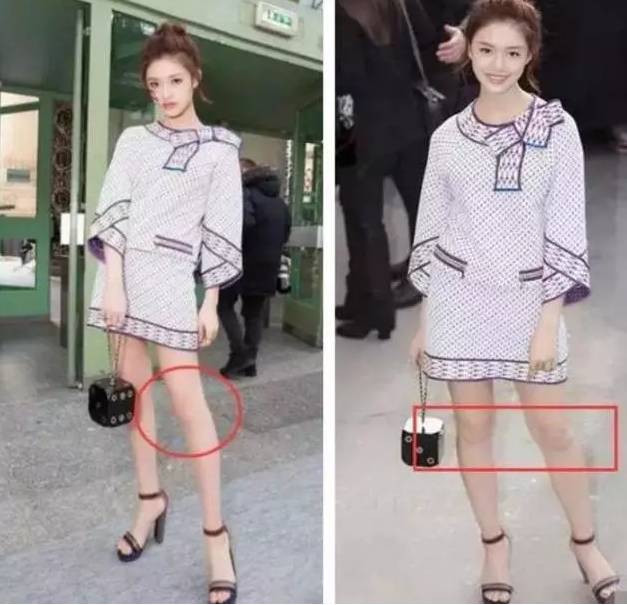 对女明星来说,p图的主要部位就是腿,所以腿上的膝盖也就成了p图的重灾区,膝盖p的太过,磨皮太白,像充气娃娃一样。