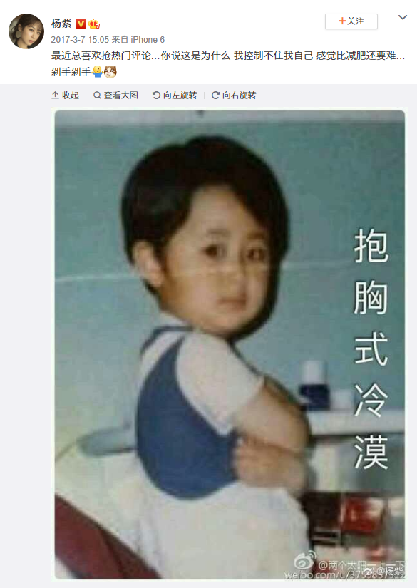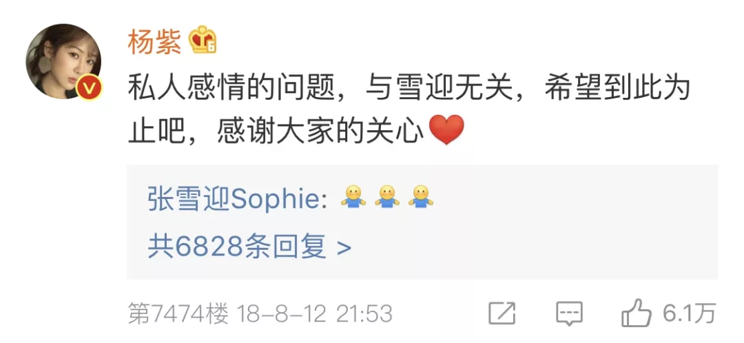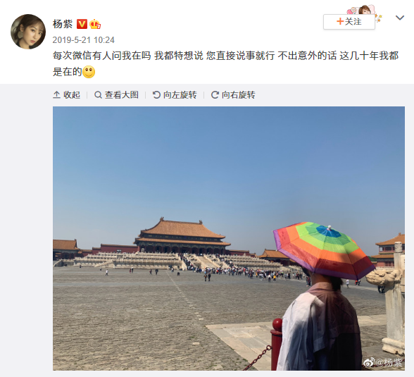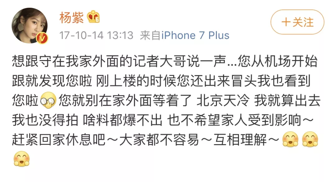 即使狗仔队都已经跟到家楼下了,杨紫都还能气定若闲地在微博上跟对方讲理。