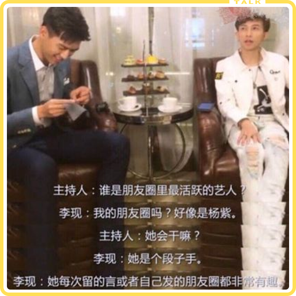 李现曾在采访中说,杨紫的朋友圈非常有趣。
