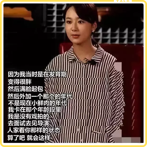 在进入青春期后,由于身材管理失控,她很长时间都接不到戏,很多网友也因此对她群起而攻之。