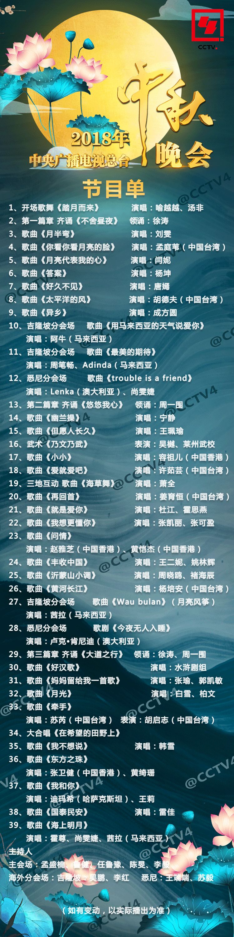 一年一度的央视中秋晚会今年定名为“2018年中央广播电视总台中秋晚会”,这是央视、央广、国际广播电台三台合一后面向全球推出的第一个“中秋晚会”。