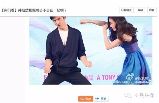 井柏然在采访中说过:喜欢倪妮这个类型的女孩,但是下手晚了!(当时已经有男友冯绍峰了.)在另一次采访里说:“谈恋爱选倪妮,因为美和性感;结婚的话选郑爽,因为贴心温暖会照顾人。”现在果然谈恋爱选了倪妮!