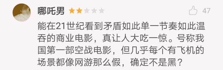 虽然采用了新的战斗装备,甚至央视也为《空天猎》点赞,但是大众的口碑才是真的实力,没想到《空天猎》首映票房就如此尴尬!