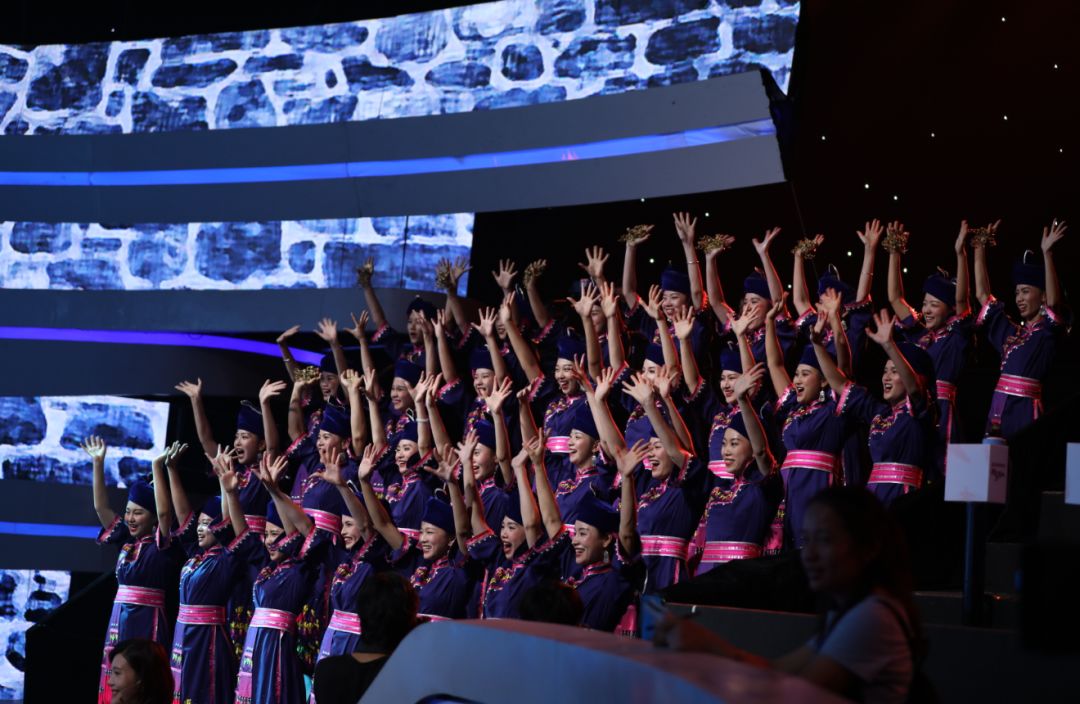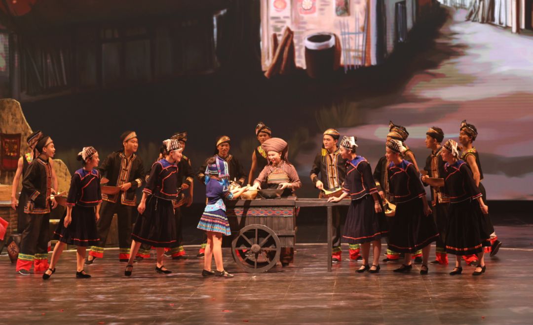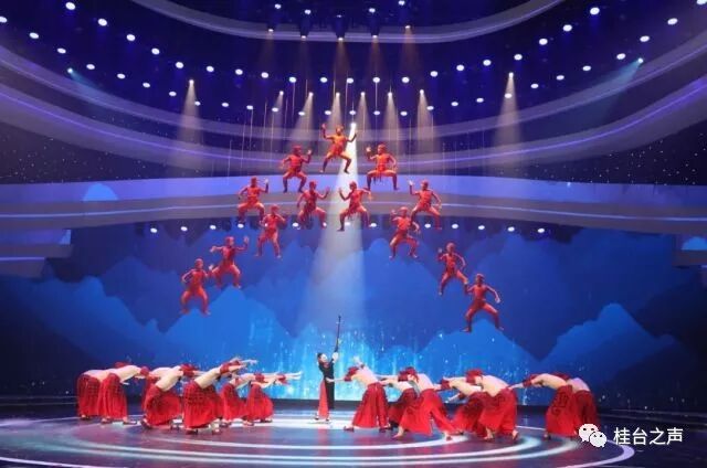 清一色褚红色服装和红色彩绘、大气磅礴的背景配乐、威亚蛙人造型……以花山岩画图案为原型精心编排的舞蹈,一上场就引爆了现场氛围。鲜明的壮族民族元素让评委感到震撼!