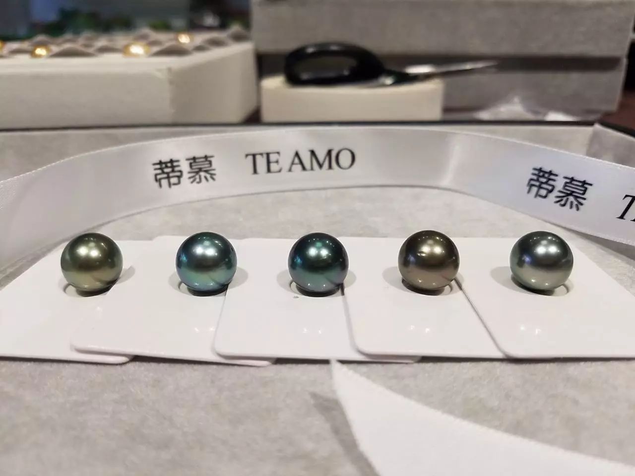 例如上图的大溪地黑珍珠,大溪地黑珍珠有非常纯正的黑色,也有伴有灰色调,也有伴有蓝色调,还有一些伴有绿色调我们称之为孔雀绿,呈现出来的是天然的颜色,因为孔雀绿非常的稀有所以这种孔雀绿的大溪地黑珍珠的价格是非常高的。