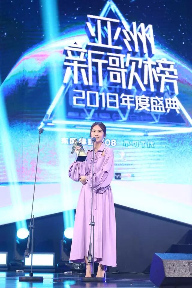 8月19日晚亚洲新歌榜2018年度盛典上,楊丞琳一袭紫色露背连衣裙现身,性感又洒脱,现场杨丞琳获“港台最受欢迎女歌手”荣誉。