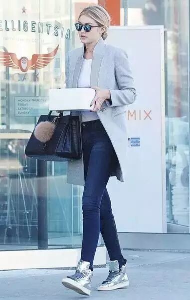 虽然大面积的金属色调造型在日常生活中不易驾驭,但鞋子上加入金属元素,却可以轻轻松松告别邋遢变潮人,像Gigi和Angelababy一样,闪闪动人。