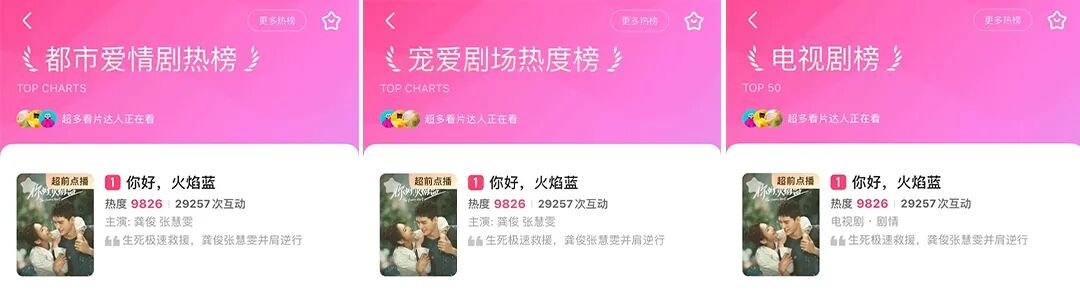 最近由龚俊张慧雯主演的网剧《你好,火焰蓝》刚上映,就占据了多个热度榜的第一名。