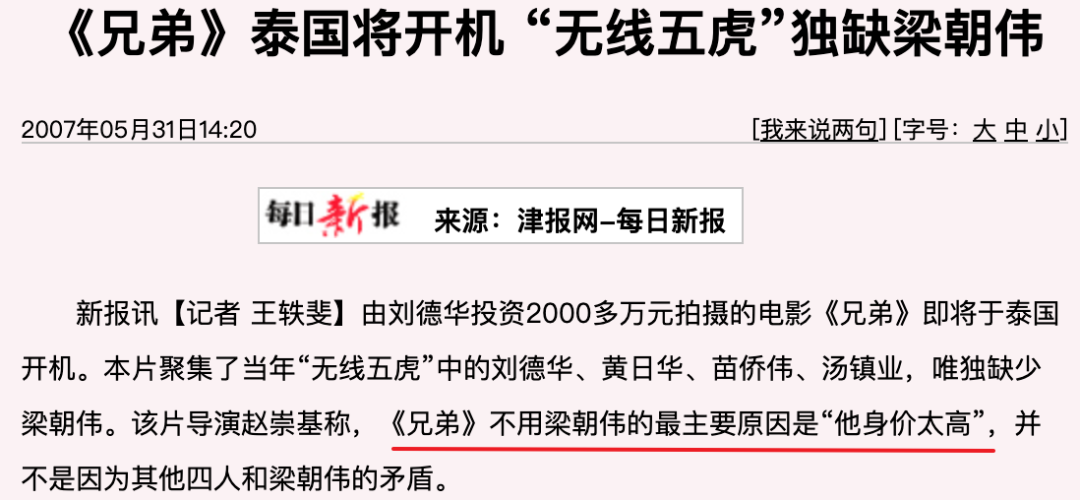 打那以后,梁朝伟的脑袋上结结实实戴了顶“背叛兄弟”的帽子。