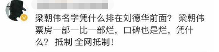 搞得刘德华粉丝一肚子闷气,加上番位还排在第二,这才向片方开炮。