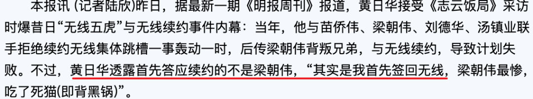“其实是我首先签回无线,梁朝伟最惨,吃了死猫(即背黑锅)”。