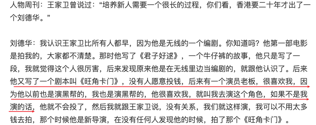 在王家卫还是个tvb的十八线小编剧时,就被刘德华看中了。