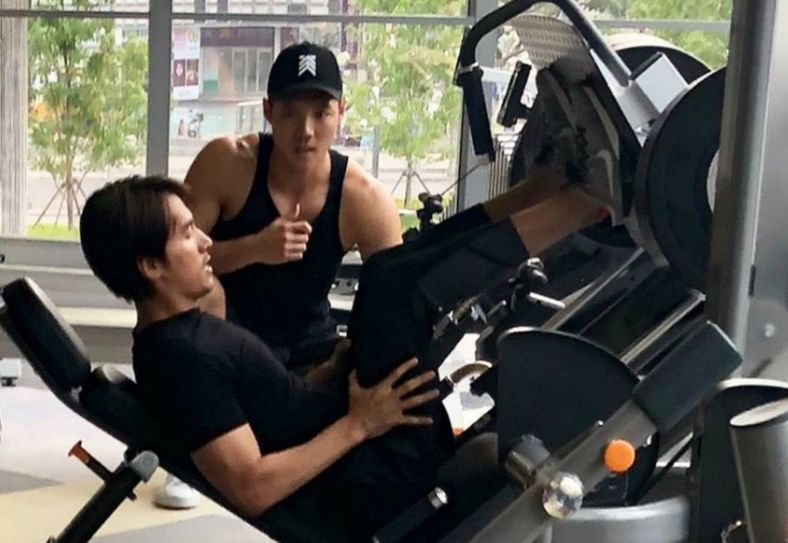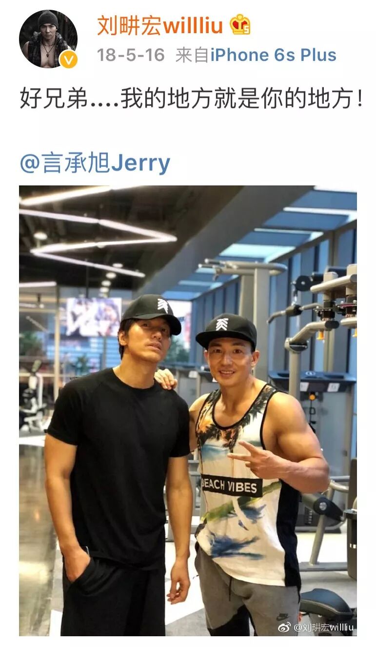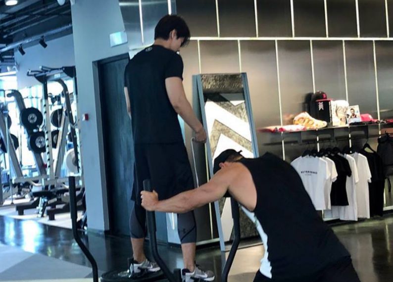 在网络上晒出言承旭健身房合影
