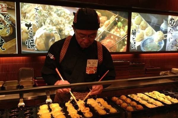 杂样煎菜饼、章鱼烧等裹上小麦粉的汤汁再煎的“面粉食物”很发达。在街上可以看到站着吃的“串かつ”小吃摊,有酱汁不可以蘸两次的规则。