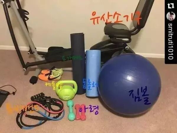 因为要照顾孩子,她没有去健身房,而是选择在家里摸索锻炼。
