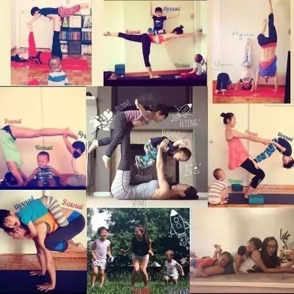 瑜伽、游泳、网球、滑板、攀岩、芭蕾……她都信手拈来。做运动的时候,加入和孩子的互动,一举多得。