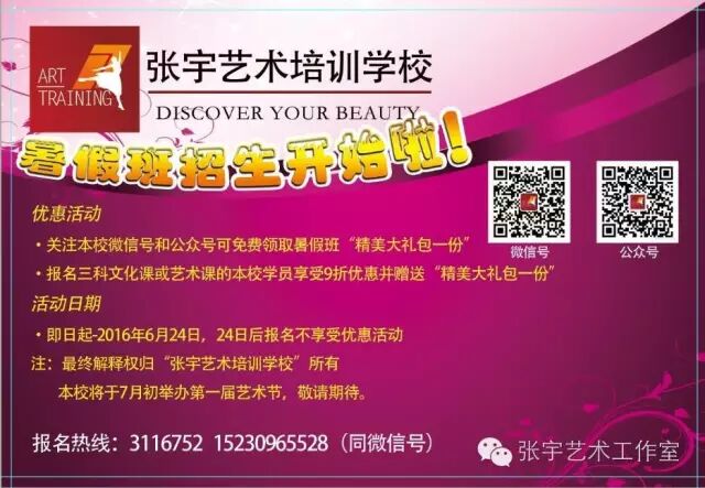 张宇艺术培训学校暑假班优惠活动仅剩3天。。。。。。