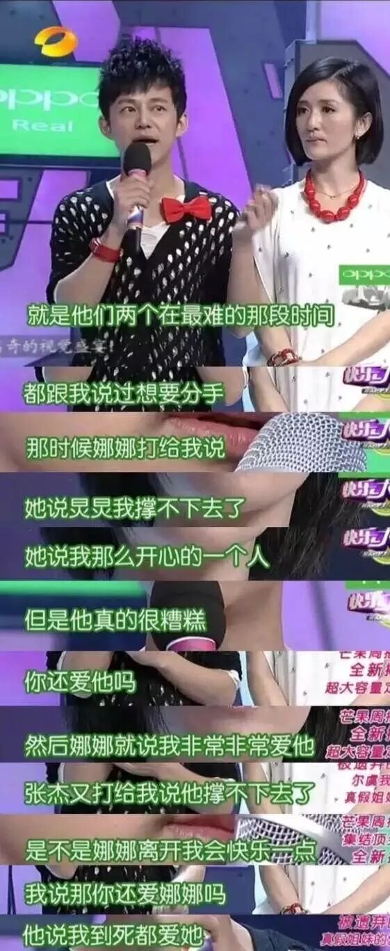 娜娜说,炅炅,我撑不下去了,她说我那么开心的一个人,我现在我没有办法,她说已经半年时间了,我要尽量陪在张杰的身边,但是他真的很糟糕,他那个情绪真的很低,我觉得我一个那么快乐的人,我暖不了他,我觉得我被他也带得很抑郁了,我快撑不下去了。