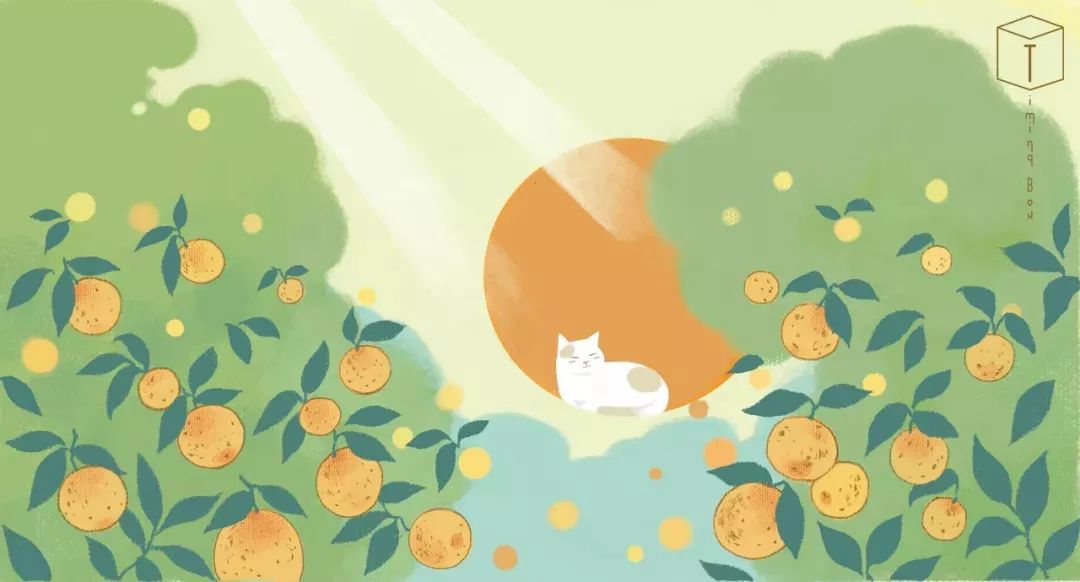 插画以摩洛哥橙花园为原型,让你不需要飞上10个小时,就可以拥有的诗和远方。画面中的那只喵,就是你呀~